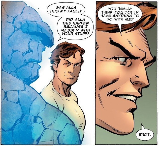 Clobberin’ time: Ben’s story in this issue leaves us with a lot of unanswered questions. Did his tampering with the sigils have an impact or not? Does he still blame himself for creating Dr. Doom. The comic doesn’t say.