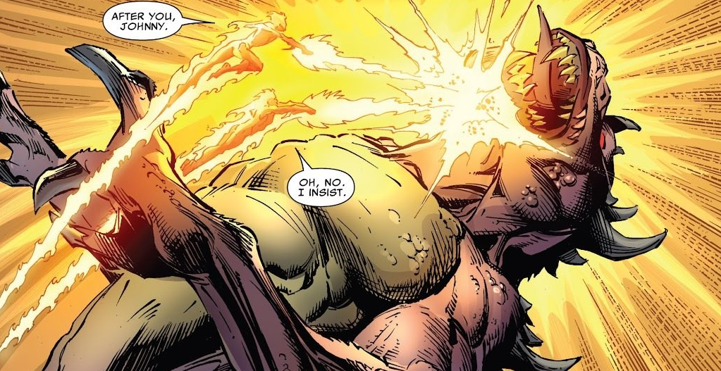 Flame on/Foundational: The most interesting part of this story is the back and forth between Johnny and Old John. Johnny assumes he can’t be killed not that he’s seen his future self, while Old John continues to dodge questions about the future.