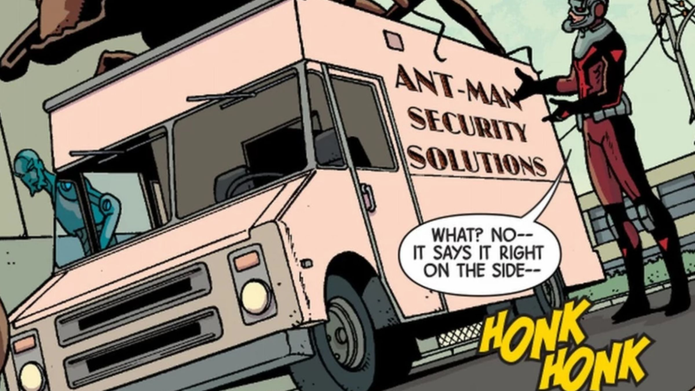 Fantastic fifth wheel: Throughout this issue, Ant-Man communicates with a place and/or organization called A.N.T.H.I.L.L.1. We get one glimpse of this, an entire team of people wearing black and white Ant-Man gear. The Marvel Wiki has no information on A.N.T.H.I.L.L.1., except to note that this is its first appearance. I’ll assume this is also the last appearance.
