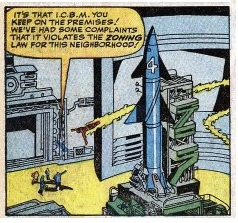 While this is going on, the FF are also being bombarded by local cops, neighbors, and more, all based on the ordinary inconveniences of trying to live with a superhero headquarters in the neighborhood. Zoning regulations have a problem with the team’s personal ICBM transport missile, while others complain about the noise, random damage, and more coming from the Baxter Building. Seeing the need for a more secluded place to conduct his experiments, Reed reads (heh) about an island for sale off the coast of New Jersey (!). The team hops aboard the amphibious U-Car and checks it out.