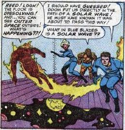 Here’s where things get just a little kooky. Doom has picked this particular building as his hideout, he explains, because a solar wave is about to hit it, transporting the entire building into outer space. (“I should have guessed!” Reed says. How, exactly does one guess something like this?) Sue extends her force fields to the other side of the wall, trapping Doom along with them. Desperate to escape, Doom falls through the floor and is sucked away into the vastness of space. With him gone, the FF hurries through Doom’s escape route and finds their way to safety. Johnny and Ben say they’re glad Reed is the FF’s leader, but Ben is still not so sure.