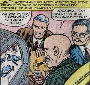 Fantastic or frightful: Gideon is an uninteresting villain, and the Fantastic Four make themselves look incredibly stupid by falling so easily into his trap. The Beatle wig, though, makes up for it.