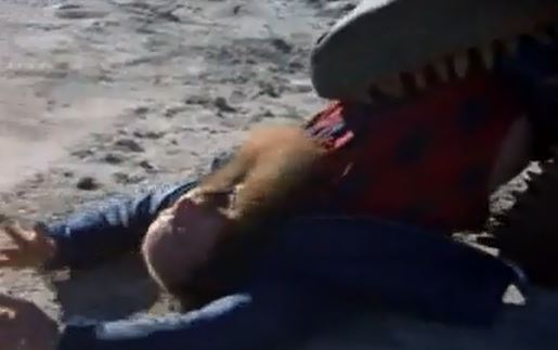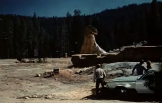 What the felgercarb? Two of the monster’s victims are a pair of showbiz types who just happen to be driving through town… on their way to Vegas. Taking the scenic route, maybe?