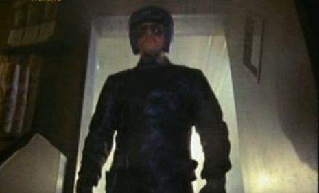 Here’s what happens: Heroic police captain Barrett Coldyron (sweet name!) is developing a new robotic police officer to clean up crime on the mean streets of Dallas. He wants four years on the project, but the scumbag politicians give him only 60 days, so he quits. Without him, the project goes haywire, and the mustachioed cybernetic cop R.O.T.O.R. is out on the street.