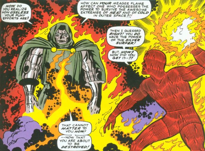 Flame on: When fighting Doom, Johnny threatens to use his super-nova flame, but doesn’t for fear that it will destroy the entire state (!).