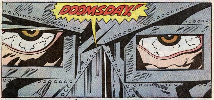 We go from there to the Kremlin, where jets are launched to attack Latveria, Doom’s country. (I didn’t know the Russians kept their jets inside the Kremlin building.) Upon arrival in Latveria, the jets are destroyed in a corrosive cloud, created by Doom’s new cosmic powers. Doom still has the Silver Surfer trapped inside his castle. The Surfer tries to fight back, but he’s so weak he can barely stand. Doom speechifies like you wouldn’t believe, saying, “I must prepare the helpless humanity for the coming of… doomsday!” (If this were a movie, that would be the trailer shot.)