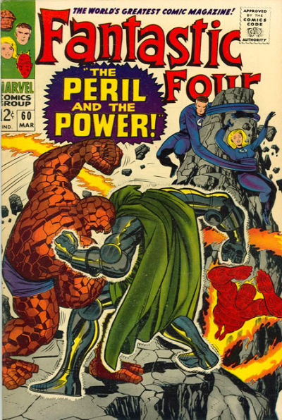 Re-reading the Fantastic Four comics from the start. Feels like this Doctor-Doom-has-the-Silver-Surfer’s-powers story has been going on forever, doesn’t it? We’re at issue #60, and it’s not over yet.