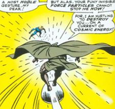 We then go to outer space, where the Watcher is (what else?) watching the battle. He muses on how he could help if wanted to, but he’s sworn not to. Then, uncharacteristically, he looks away from the fight, choosing instead to watch some primitive aliens on some other planet.