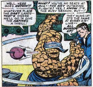 Fade out: Sue starts out the issue in “nagging wife” mode, but she later twice saves Reed and Ben with her powers.