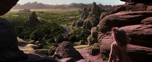 Then we get the image that was in all the movie’s original commercials, the over-the-shoulder shot of Jen looking out over the vast, green wilderness. This is our “sense of wonder” moment as Jen begins his quest. In voice over, he says he’s not ready to go alone, but then immediately changes his mind with, “All right, alone then,” and he marches forward. See, he’s not useless. This is him being the courageous hero.