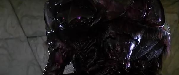 The General calls out, “Garthim! Attack!” and we get our first real good look at the Garthim – the henchmen or stormtroopers of the film. They’re basically giant bugs, a big black shell with all kinds of twitchy arms, legs and claws. The canon informs that the Garthim are not natural to this world. They are artificial constructs created by the Skeksis from “memories of sea creatures” from the Skeksis’ original world. (Yes, another world. There’ll be more detail about this in another post.) The Garthim were created for the sole purpose of hunting Gelfling, which is why they’re all gone now. I love that the Garthim’s eyes are the same purple light of the Dark Crystal, so that the audience immediately identifies them as being connected to it and to the Skeksis. This also reinforces how they were built by the Skeksis, with the Skeksis using the Crystal for their own, ahem, dark purposes.