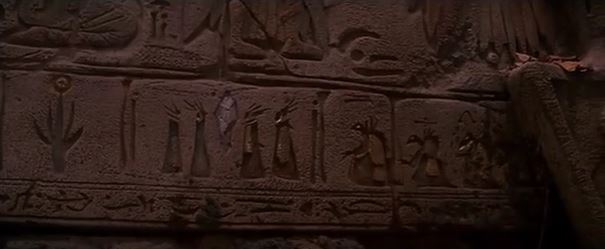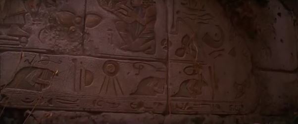 Jan calls Kira over to him, saying he’s found something. He’s found a carving on the wall, with an image shaped like the shard. Kira asks what the funny marks are, and Jen replies that it is writing, which he defines as, “words that stay.” Jen’s Mystic master taught him how to read, an education never available to Kira. See, critics, Jen is not useless. Jen then reads the prophecy: “When single shines the triple sun… what was sundered and undone… shall be whole, the two made one… by Gelfling hand, or else by none.” That “or else by none” part is interesting, because it doesn’t state for sure that a Gelfling will save the world, just that it might happen. As Aughra said earlier in the film, the Great Conjunction could save the world or destroy it, despite Jen’s presence.