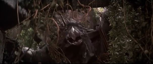 The Chamberlain admits he is an outcast, and that if the Gelflings come with him to the castle he will be “outcast no more.” He repeats “Please,” several times in a whining, almost begging manner. “Show them you want peace,” he says to Jen. “Show them Gelflings will not harm us.” The music gets all weird here, and it seems Jen is starting to buy this. Kira steps between him and the Skeksis and he snaps out of whatever haze he’s in. The Skeksis continues “Please, please,” but Jen snaps “No!” at him, and he and Kira run off. The Chamerlain, apparently too large to pursue them through the opening the escaped through, stays behind. In one of my favorite shots in the whole movie, his gets angrier and growlier as he refrains, “Please! Wait! Please make peace!”