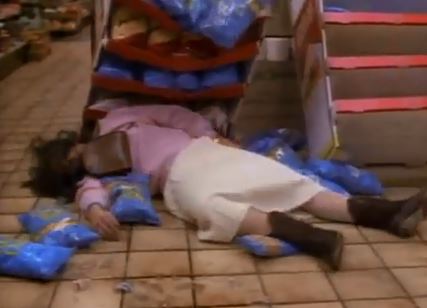 What’s goin’ down: Hanson’s trying to get up the nerve to properly break up with his on-again-off-again girlfriend Amy. Then, while they’re at a convenience store, it’s robbed and the robber shoots Amy right in front of him. Holy crap!