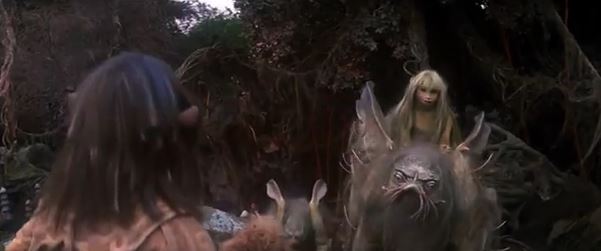 The music swells as the Landstiders take off running. Kira tells Jen to hang on, as they go fast. Believe me, I have scoured every inch of the tie-in books trying to find anything that says definitively just what kinds of speeds these things can reach, but no luck. The never-erroneous internet tells me that giraffes can reach speeds of 35 miles per hour, so there’s that, but could it be possible for Landstriders to tap into the same passage-of-time magic the Mystics are using (if that’s what they’re doing) to cover even larger distances? Possible, but, again, I’m only speculating.