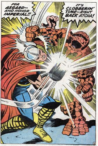 Clobberin’ time: The awesomeness of the Ben/Thor fight is diluted somewhat by them both being depowered.