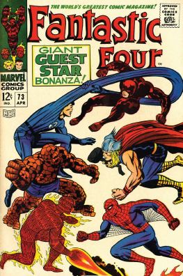 Re-reading the Fantastic Four comics from the start. Issue #73 is interesting, in that it continues stories started in other comics. You see that all the time these days, but it was something new back then.