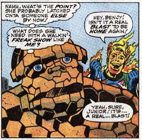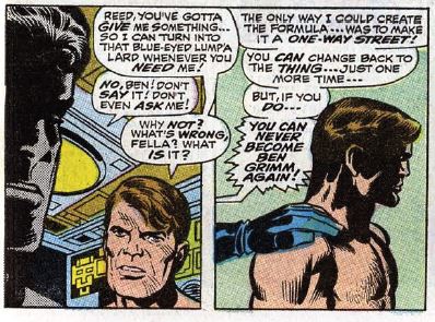 Clobberin’ time: It’s never made clear why Ben believes he still has superhuman strength after becoming human again. It a needed story point, to emphasize the seriousness of the choice he must make, but it also makes him look really dumb.