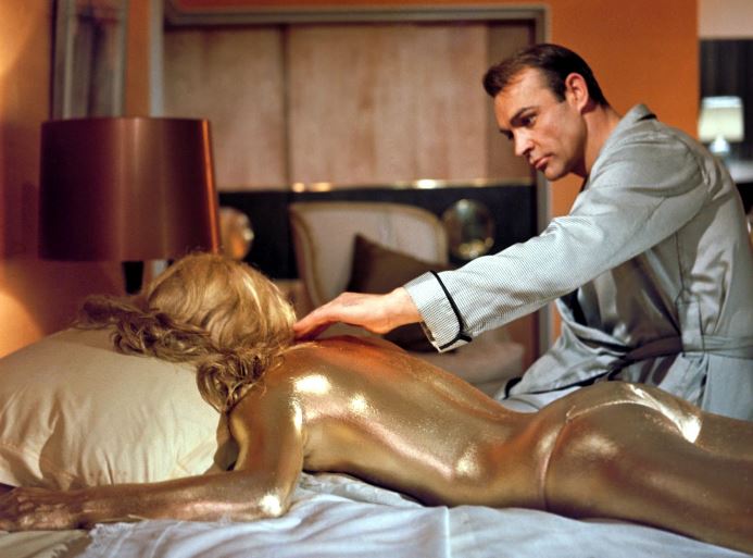 Bond babes: What do you suppose Mr. and Mrs. Galore were thinking when they named their daughter? Either way, you-know-who is a cool character. I imagine that if she’d never met Bond, she’d still be off having cool “action pilot girl” adventures. Bond also dalliances with an unnamed woman who betrays him in the pre-credits sequence, an assassin named Tilly, and a ditzy masseuse with the unfortunate name of “Dink.” Best of all, though, is the super-cute Jill Masterson, who becomes a movie icon after getting the death-by-dipped-in-gold-paint treatment.