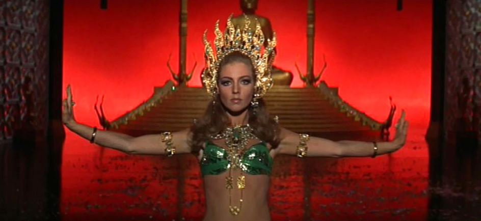 Bond babes: A running joke has to do with the forces of evil always trying to seduce Bond with beautiful women. As such, there are hotties everywhere, as part of the gag. Most notably, Ursula Andress is back! As the sneaky, seductive Vesper Lynd, she’s the opposite of the naïve wild child she played in Dr. No. Also prominently featured is Mata Bond, the daughter of Bond and the legendary Mata Hari, who is recruited by her father as another “James Bond.” I really liked Mata, in that she was not only sexy and charming, but she got to be the hero in her scenes, without some dopey man having to rescue her.
