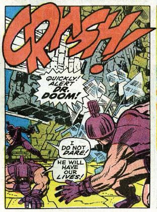 Trivia time: Many people have compared the Doom dinner scene to a similar scene in The Empire Strikes Back, in which Darth Vader reveals his presence at a fancy dinner table. Doom killing Hauptmann in this issue is also similar to Vader choking his underlings with the Force. Both George Lucas and Stan Lee have been playfully evasive in interviews over the years as to whether Vader was inspired/influenced by Dr. Doom.