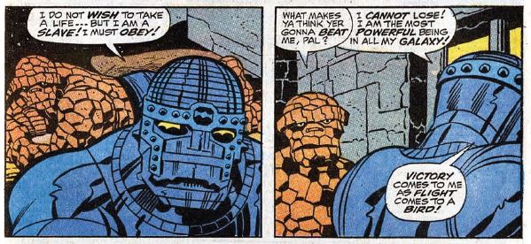 Rereading the Fantastic Four comics from the start. Let’s see, how to summarize this plot? The Thing is trapped on a planet of Skrulls who have taken the form of old-timey gangsters, who want him to fight in some gladiatorial games. Got it? Good. Here’s issue #92: