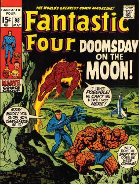 Re-reading the Fantastic Four comics from the start. Issue #98 is an interesting beast. The fictional Marvel heroes had walked on the moon several times, and then Neil, Buzz, and company went and did it for real. This comic was created to address real life intersecting the fantastical comic world. So, hey, let’s go to the moon!