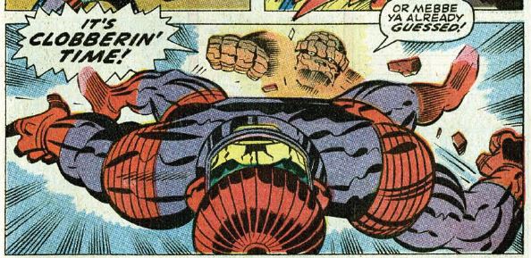 Reed still wants to know what’s going on, and Johnny helps by finding a hidden entrance leading underground. Ben stays behind to guard the unconscious sentry. Underground, Reed and Johnny find the stimulator, which is tracking Apollo’s progress to the moon. Every time Reed or Johnny try to get close to the machine, it sends out rays that weaken them. In space, Apollo is almost landing on the moon, with no idea the stimulator is targeting them. Reed, in his weakened state, calls out to Ben, who runs to their aid and punches out the machine, destroying it.