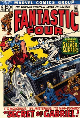 Issue #121: The FF fights Gabriel, along with several strange lines of dialogue speculating on whether he’s an angel. Gabriel speaks to all the New Yorkers out on the street, telling them that the Earth can be spared if they kill the Fantastic Four. The locals chase the FF around for a few pages, until Reed leads the team to a TV station. All broadcasts have stopped worldwide, due to fear about Gabriel destroying them all. The FF heads back to the Baxter Building, and then starts another fight with Gabriel, who throws all their attacks back at them, flooding part of NYC while he’s at it.