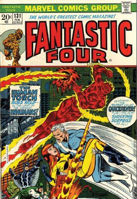 Issue #131: This issue starts back with Johnny and Crystal, where she reveals she’s not alone in that tower. Quicksilver is in there with her. (Quicksilver has already had a history with both the X-Men and the Avengers.) After much yelling and accusations, Crystal finally gets Johnny to calm down long enough for an explanation. She says that when she left him last time, the teleportation went screwy, and put her in the path of a mutant-hunting Sentinel. She rescued Quicksilver from the Sentinel’s attack and brought him to the Inhumans’ city. As Crystal nursed Quicksilver back to health, they started having feelings for one another, and even kissing! Johnny asks Crystal if she loves him or Quicksilver, and she tearfully answers, “I don’t know.”