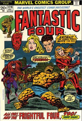 Issue #129: While everyone is recovering from the fight with the Mole Man, Johnny announces that he can’t stand not being with Crystal, so he’s quitting the team. He tries to leave while his teammates try to force him to stay, for this issue’s excuse for the characters to show off their powers for a few pages. Sue finally lets Johnny go, saying a man should be with the woman he loves. Johnny arrives in the Himalayas, home of the Inhumans’ hidden city, where he is attacked and abducted by Inhuman guards. They take him to Black Bolt, and Johnny thinks that Black Bolt now has ill will against humans.
