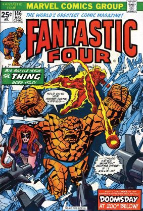 Issue #149: Namor says he’s attacking to seek revenge on Reed for putting Franklin in a coma. Medusa stays behind while Reed, Johnny, Ben, and Thundra fly off in the Fantasticar to confront Namor. Namor and his sea monsters battle the Army and the NYPD, and then the FF. Namor beats up Johnny real good, and Sue gets into the fight by destroying the Fantasticar with her force fields. Namor then unleashes Giganto (the whale monster from FF#4) onto the city. Ben fights Giganto and the other monsters while Thundra fights Namor, chiding him the whole time for his being a no-good male.