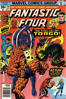 Issue #174: Sue uses invisibility to escape the High Evolutionary, but accidentally teleports herself to a lifeless planet, where she’s not able to rescue anyone. On the robot planet, Torgo makes a big speech about organic life versus mechanical life. Reed and Ben manage to fight back, with several pages of Ben and Torgo wailing on each other. Torgo finally agrees to accept Ben and Reed’s promise, and he lets them go.