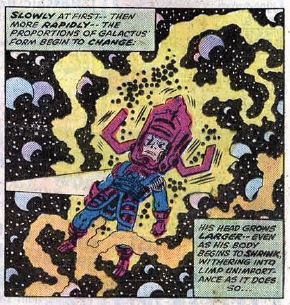 Flame on: Johnny doesn’t seem all that serious about retiring from the team to be with Frankie, considering he leaves her twice to do the superhero thing. During the battle, his super-hot nova flame has little effect on Galactus.