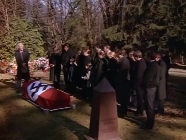 What’s goin’ down: The episode begins with a funeral, where everyone talks about old-fashioned values. Then the camera pulls back to reveal a Nazi flag over the casket. Wha-huh?!? Yes, a member of a neo-Nazi group was murdered, so the Jump Street cops are undercover among both the would-be Hitler Youth and the protesters fighting them.