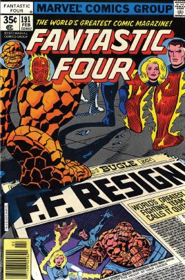 Parnvial’s workmen try sneaking some vibranium out of the lab, and Reed stops them. Turns out Parnival is really a supervillain named the Plunderer. Reed gets knocked out, but not before firing the team’s “4” flare into the sky. Reed, Sue, and Johnny come running, as Ben declares, “The Fantastic Four are back!” Then of course we get several pages of the FF fighting the Plunderer’s henchmen, and the Plunderer is actually pretty capable, with gadgets on hand able to counter the FF’s powers. Reed, although he still has no powers, manages to outsmart the Plunderer and punch him out. Reed says the breakup is still on, and he puts a “Now renting” sign in front of the Baxter Building.