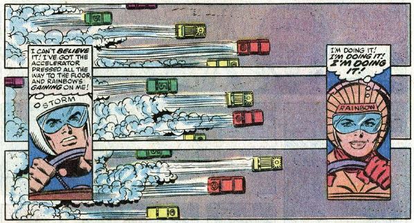 Flame on: Johnny’s love of race cars makes a return. He still pining for Frankie Raye in one issue, but then gets a new potential love interest in Rebecca Rainbow in the next. We’ll circle back around to Frankie soon enough.