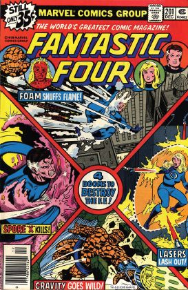 Fantastic or frightful? After the excellent issue #200, we go back to confusing, frustrating stories. The interaction between the FF and Iron Man is quirky fun, but this space story with the Skrulls and the Xandarians is impossible to follow, constantly jumping around plot-wise, and with a ton of characters to follow — and it’s far from over.