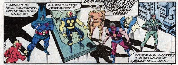 Trivia time: The original Nova comic had just been cancelled, so his appearance in this story arc is meant to resolve all the dangling plot threads that had gone unfinished in his own book.
