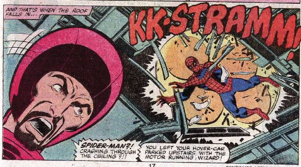 The Spider-Man story is a direct continuation from Spectacular Spider-Man #42, which goes into detail how Spidey was captured by the Frightful Four, not to mention Peter Parker’s friend Deb Whitman being all forlorn and lovelost.