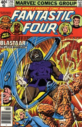Issue #215: Reed is working in his lab with a scientist named Randolph, when it explodes. This crisis is another excuse for the characters to show off their powers for a few pages. The FF drop Randolph off at his house, where he’s attacked by street punks who think he’s rich. On the way back to the Baxter Building, where they are attacked by Blastaar the Living Bomb-Burst, who has emerged from the Negative Zone portal. They fight their way outside and into the sewers again, where Blastaar escapes.