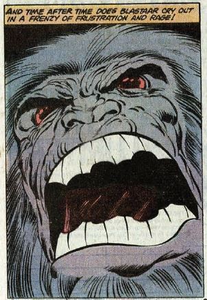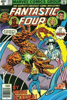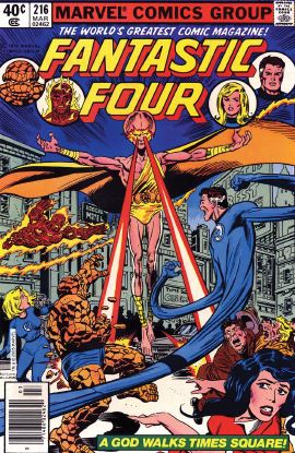 Issue #216: Randolph walks on air through Times Square, shocking the crowds while on his way to the Baxter Building. Blastaar, hiding in an alley, wonders what he can learn from this new creature. Blastaar attacks Randolph, and then the FF when they arrive on the scene. Blastaar promises to reveal to Randolph the “truth” about the FF, and somehow the highly-evolved Randolph believes him. He freezes the FF in their tracks and takes Blastaar to the Baxter Building.