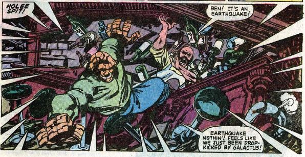 Trivia time: This is Ego the living planet’s first appearance in Fantastic Four. He had previously only appeared in several Thor comics, most memorably in the completely insane Jack Kirby story that debuted him.