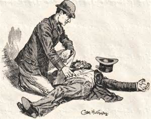 Who’s at the door: Lestrade is here, with a partner named Gregson. Lestrade is portrayed as really stupid, and Gregson keeps calling him a fool. Holmes and Watson’s landlady gets mentioned but not named, and they also have an unnamed servant (?) who answers the door for them. Holmes also befriends a group of homeless children, who scrounge up information for him, led by a boy named Wiggins. These kids will later be known as the Baker Street Irregulars, but in this book Holmes uncomfortably calls them “my Arabs.”