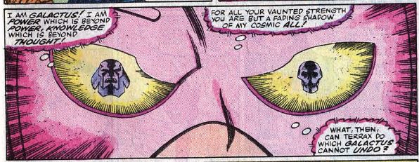Trivia time: Right before this issue, Galactus had just been to Earth two times, only to be driven back to space by Rom the Spaceknight in Rom #27 and, of all people, Dazzler in Dazzler #11.