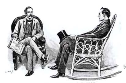 Great detective: Instead of hanging out at Baker Street, this story begins with Holmes visiting Watson at Watson’s home. He relaxes in Watson’s rocking chair (!) and enquires about the well-being of Watson’s wife.