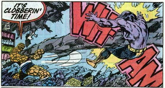 Clobberin’ time: Ben’s nickname for the Silver Surfer in this issue is “Glinty.”