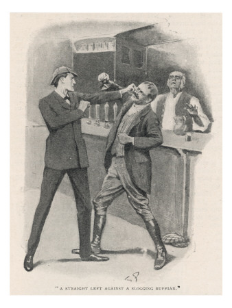 Action hero: Lots of action in this one. To get information, Holmes fights a ruffian a pub. Holmes gets bruised up, but the ruffian has to be carried out. (Holmes’ fighting style is described as “the good old sport of British boxing.”) Then there’s a horse and buggy versus bicycle chase, followed by a gunfight in the woods. Whew!