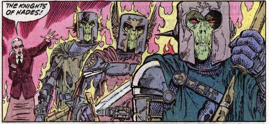 The Knights of Hades go on a rampage, smashing up the neighborhood. Reed tells Cromwell that she’s been tricked. He says the forces of Hell are merely using her to return to the Earth so they can rampage. Cromwell tries to boss the Knights around, demanding that they’re under her control, but one of them dismissively smacks her to the ground. Franklin then comes to and meets up with his parents. Cromwell freaks out, seeing that the blood of an innocent has been spilled. This is when the Richards’ home gets totally destroyed by two giant hands coming up from underground. It’s Mephisto (a.k.a. the Marvel Universe’s version of Satan) who announces that the Earth is doomed.