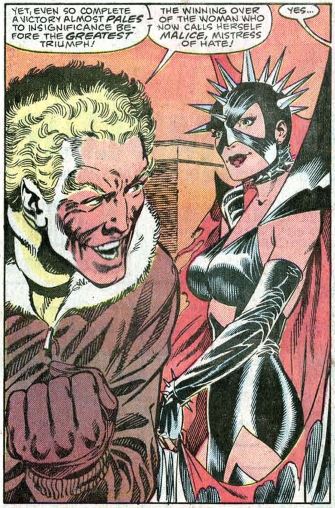 Let’s see if I can recap this: Two villains are inciting hate-fueled riots throughout New York, which is especially bad timing for our heroes, who recently survived the destruction of their home headquarters. What’s more, the villains have taken over Sue’s mind, turning her into the supervillain Malice, and having her defeat She-Hulk. Whew. As the issue begins, the two villains look over the city, which is in flames. The question is, just who are these villains. The shape-changer who previously called himself Unger now calls himself the Hate-Monger, but he’s not the original Hate-Monger who, you might remember, was Hitler. The other villain is clearly Psycho-Man, criminal mastermind from the microverse, except that the comic is still refusing to actually tell us he’s Psycho-Man. Unger says all human prejudices are at their extreme, and he makes a comment about creating a new microcosm, which seems to suggest that these two have a bigger plan beyond just causing riots. Psycho-Man negates that, though, by saying his end game is revenge against the FF.